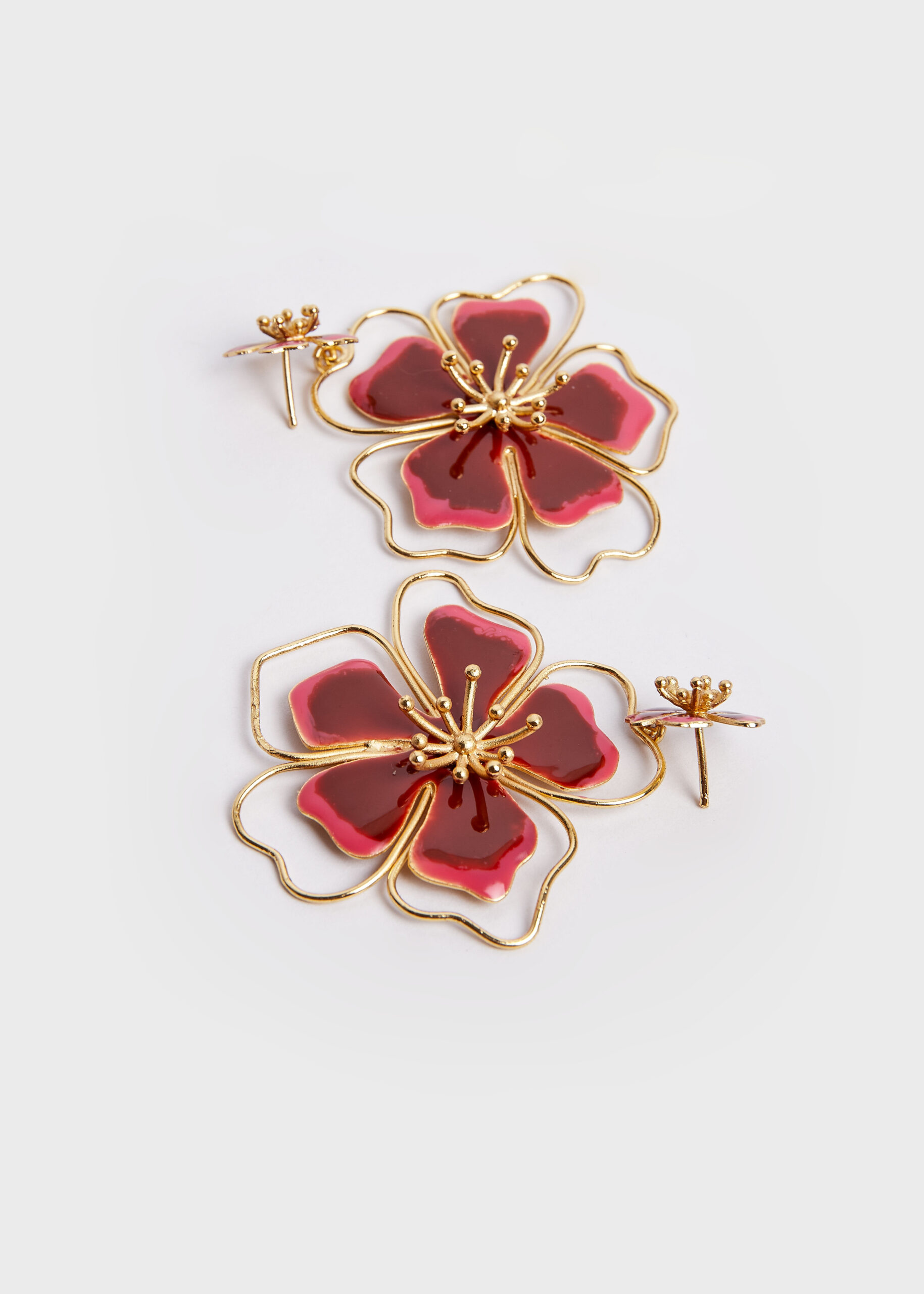 Cada par está hecho a mano por joyeros tradicionales en Bucaramanga, Colombia. Hechos en bronce con baño en oro de 24k, y pintado cuidadosamente con esmaltes cerámicos que capturan la luz y celebran el detalle artesanal.